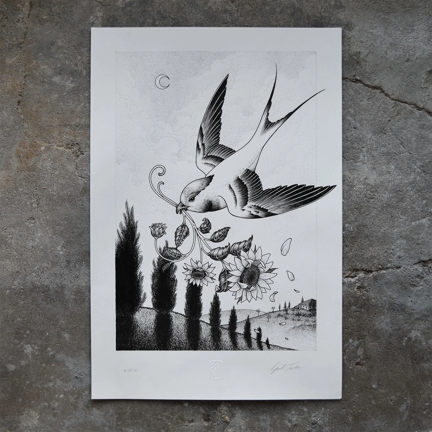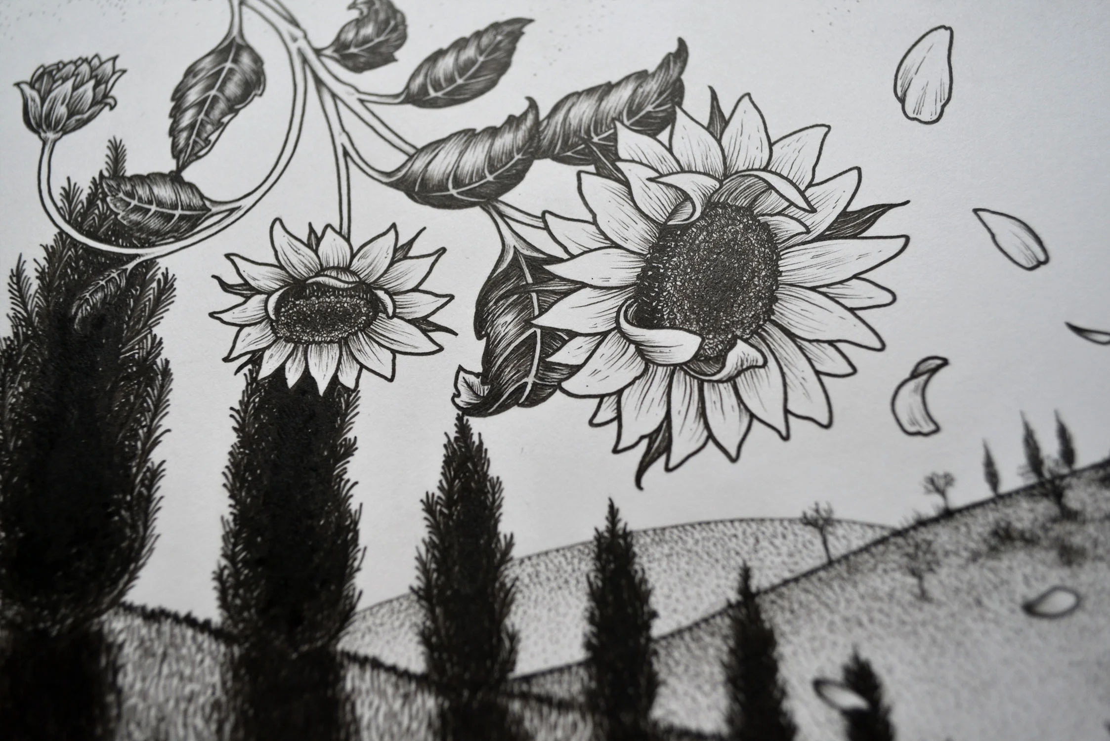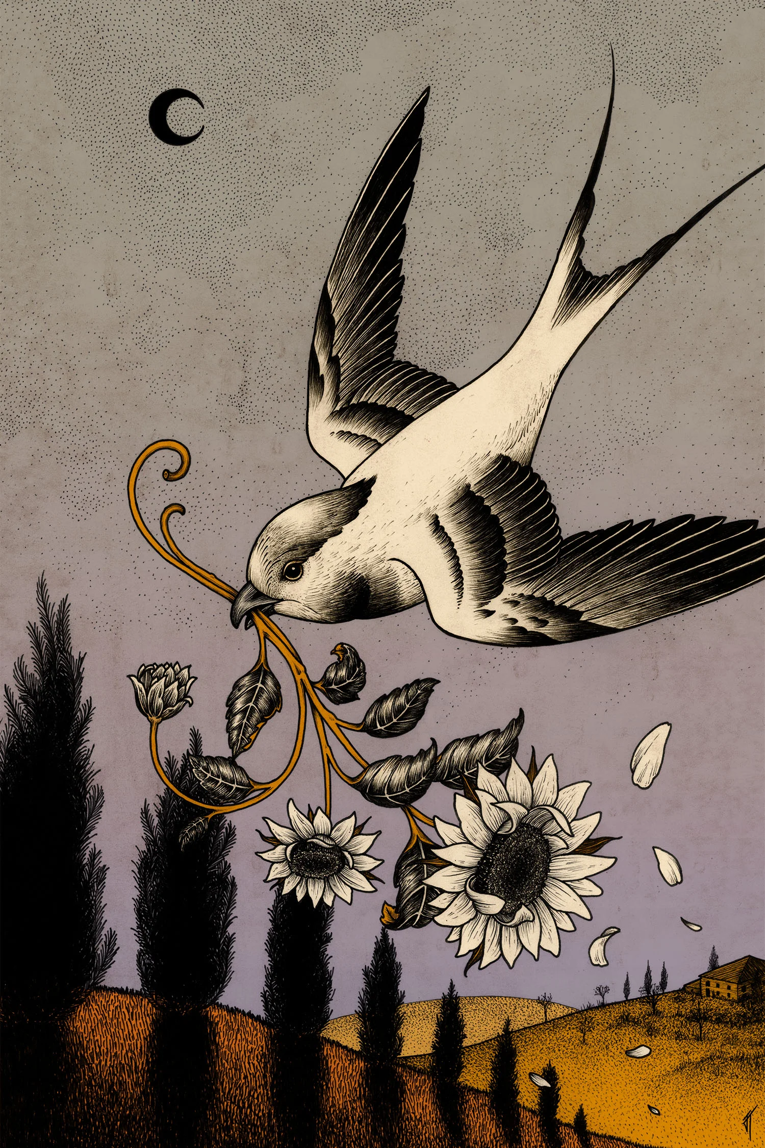 A series of highly detailed illustrated ecosystems. The three illustrations represent the natives species and environments within Switzerland, Italy, and Iceland.